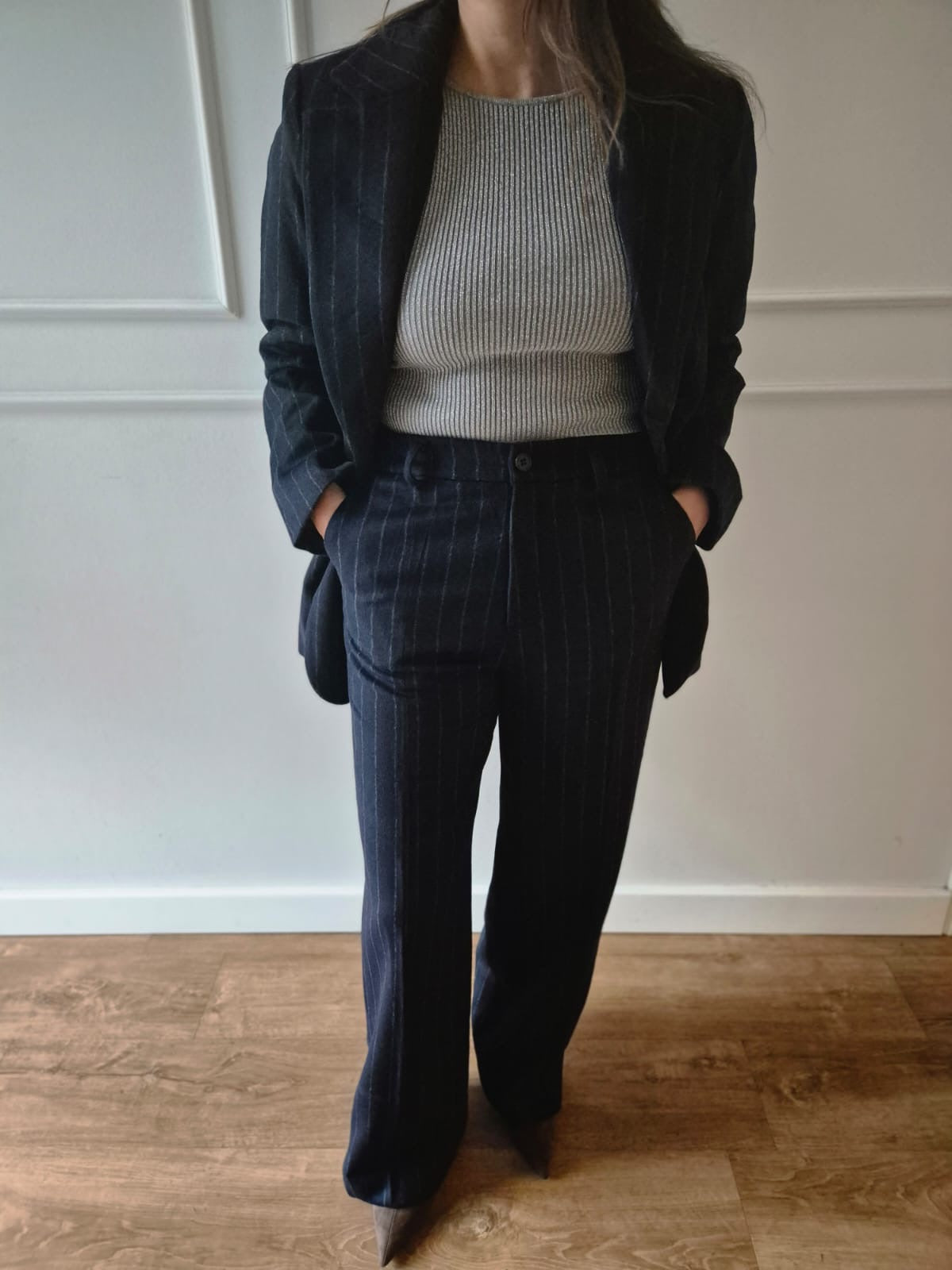 Hose aus Wollmischung mit feinen Streifen.